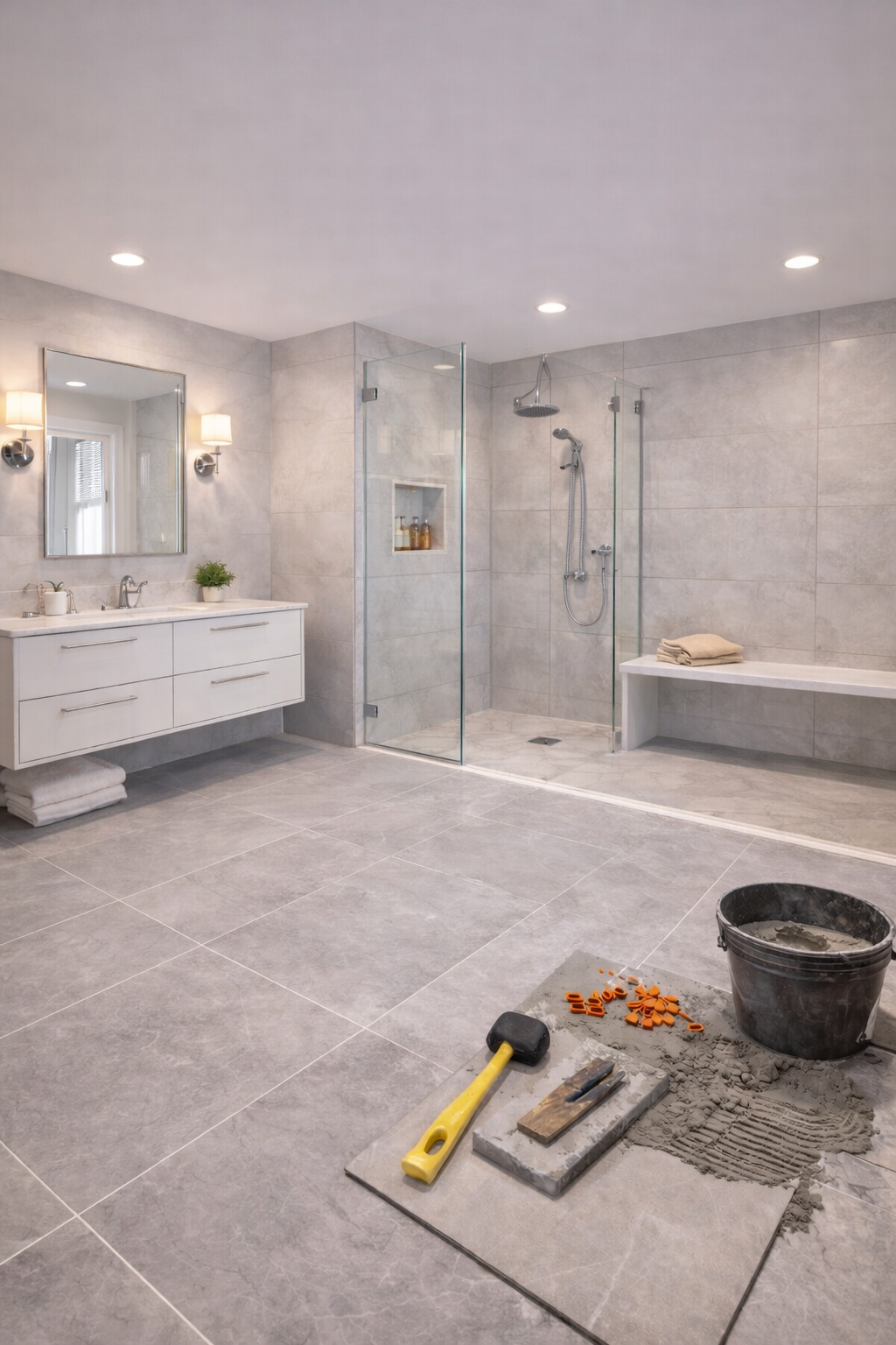 Komplette Sanierung aus einer Hand: Vom Abbruch bis zur meisterhaften Verlegung Ihrer neuen, persönlichen Wohlfühloase.